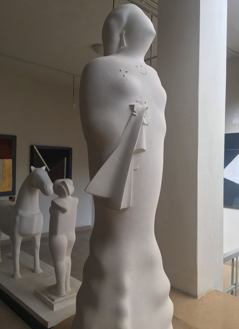 لُقّب آدم حنين بـ "راهب النحت" لكنه لم يكن نحاتًا فحسب بل رسامًا أيضًا يرى في الخط واللون امتدادًا لروح الحجر والطين مارس الفن كعبادةٍ يومية هادئة ومتأملة، تشبه صلاة تُؤدَّى بالأيدي لا بالكلمات في كل عملٍ له رسمًا أو نحْتًا كان يبحث عن نقاء الصورة الأولى عن تلك اللحظة التي يتجاور فيها الصمت والجمال.