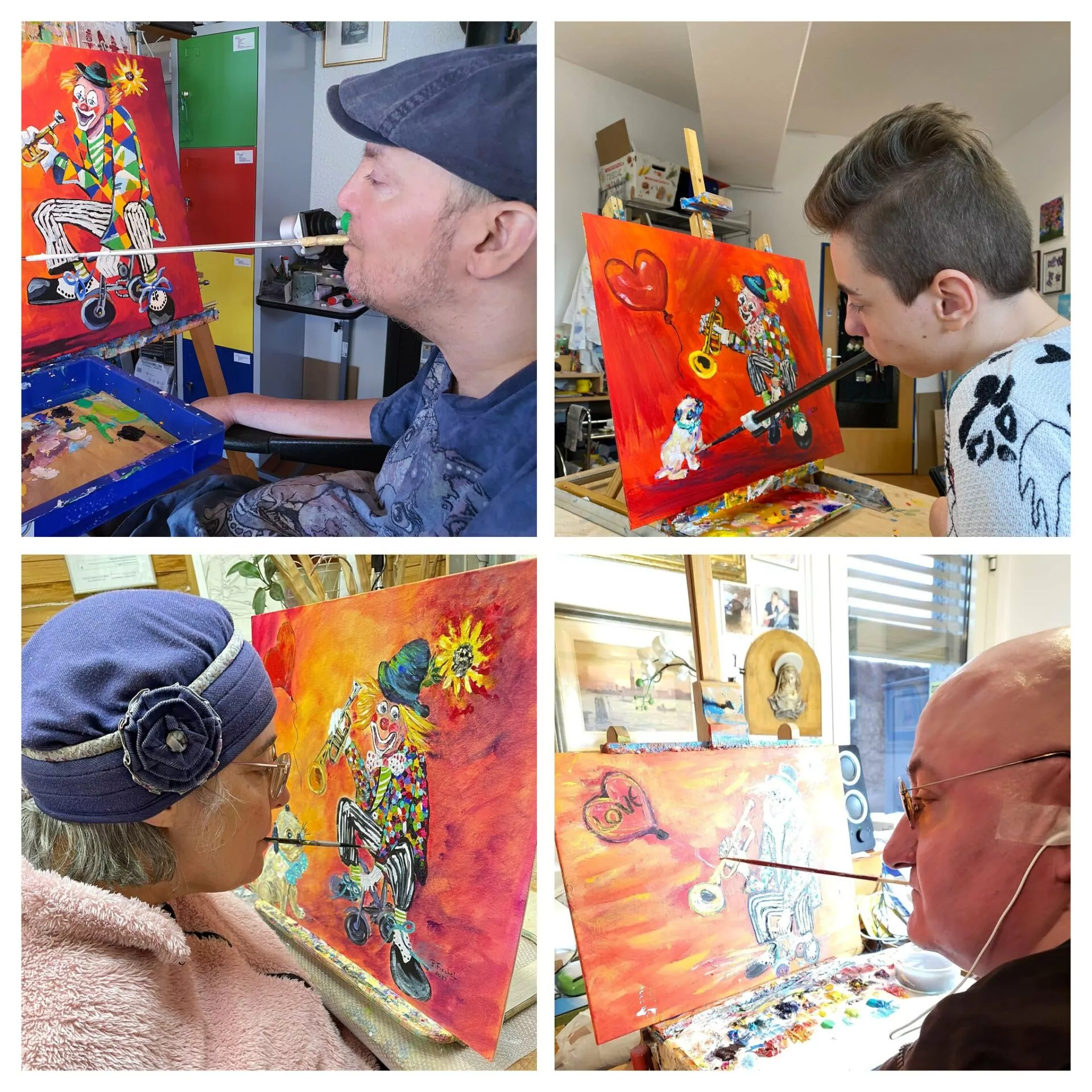 في لوحاتهم ترى أثر الإرادة ترى فنانًا يمسك الفرشاة بين شفتيه أو يثبتها بين أصابع قدمه ويبدأ من جديد وكل لون هو خطوة نحو حياة لا يريدون أن تُختصر في كلمة “عجز