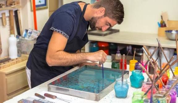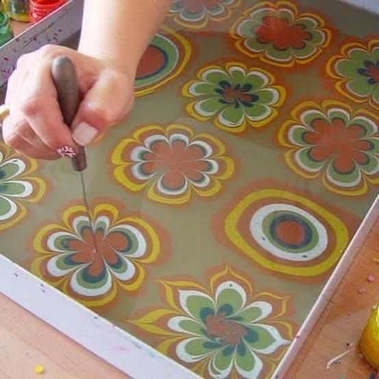 واحد من أجمل الفنون المعروفة في تركيا، وينتشر حاليا في الكثير من البلدان يعتمد على الرسم على الماء المخلوط بمواد معينة لجعله كثيفا ويستخدم له ألوان خاصة يتم رشها وتشكيلها على السطح بحيث يمكن فيما بعد أخذ ذلك الرسم على ورق مرمري خاص سميك لتحمل الماء.