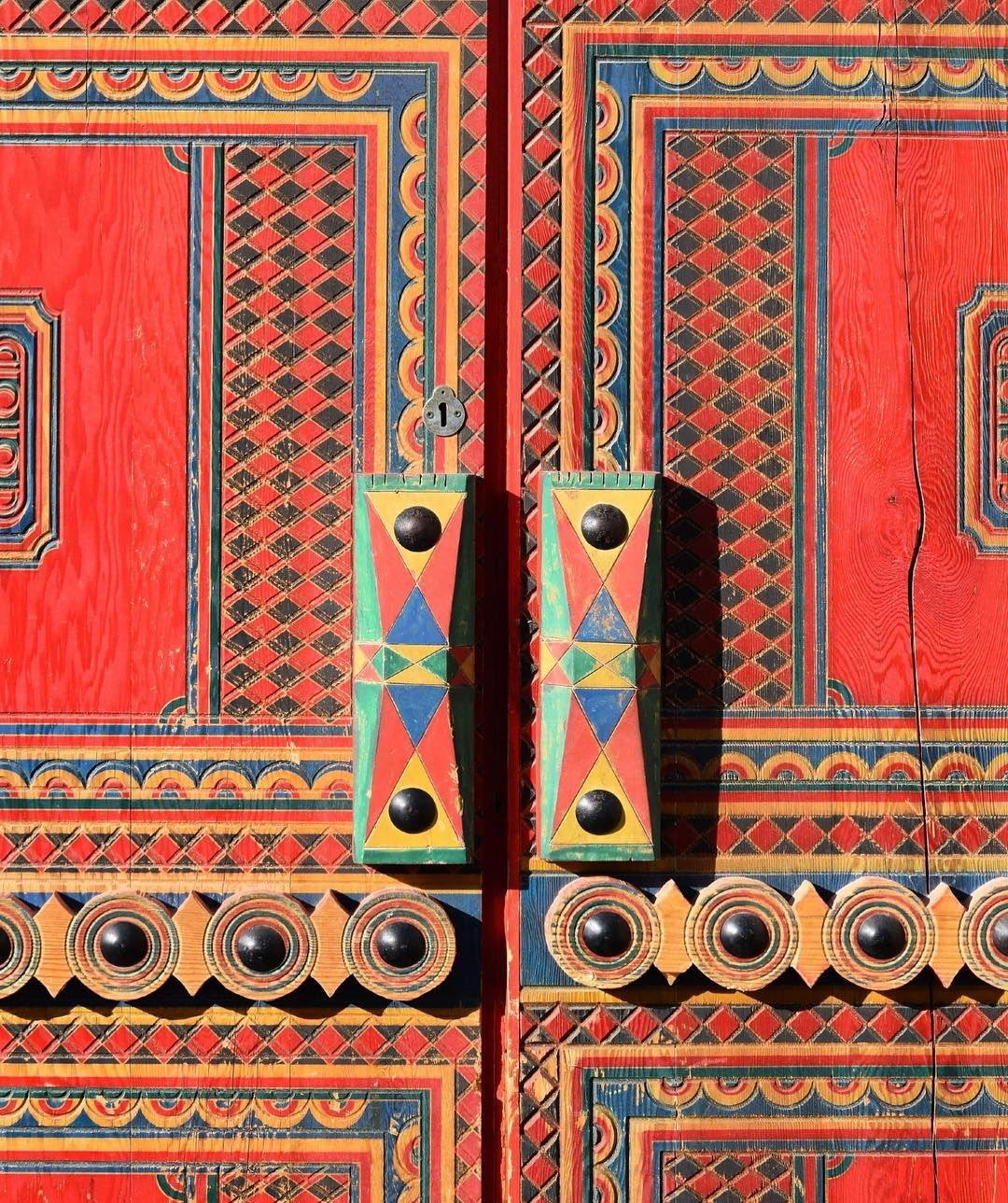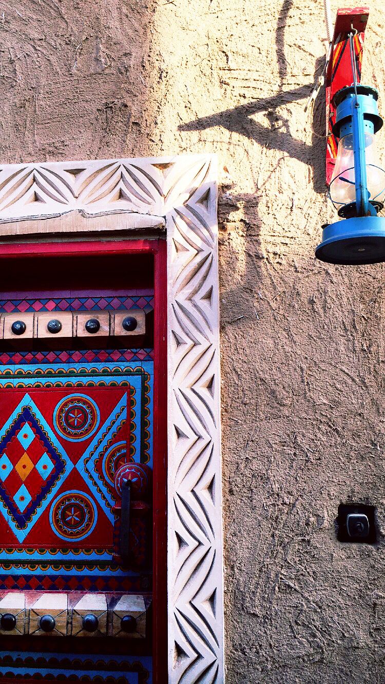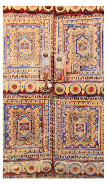 ولحماية الأبواب وإضفاء البهجة استخدم الحرفيون ألواناً من بيئتهم كالرمان وطوروا تقنيات خاصة بخلط المساحيق المستوردة مع مواد محلية كالدبس وقشر الرمان والسكر لصنع ألوان زاهية تزيد الجمال بهاء.